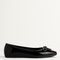 Ballerina en charol negro con diseño atemporal que resalta por su elegancia y versatilidad. Su acabado brillante aporta un aire sofisticado, mientras que el delicado moño frontal con sutiles destellos añade un detalle femenino y chic. Ideal para acompañar desde looks cotidianos hasta estilismos más formales, esta pieza se convierte en un básico de lujo dentro del guardarropa.