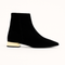 El Aura en piel negra encarna la sofisticación eterna. La suavidad del cuero resalta la silueta estilizada del botín, realzada por el destello dorado del tacón metálico. Un diseño versátil y refinado que trasciende temporadas.